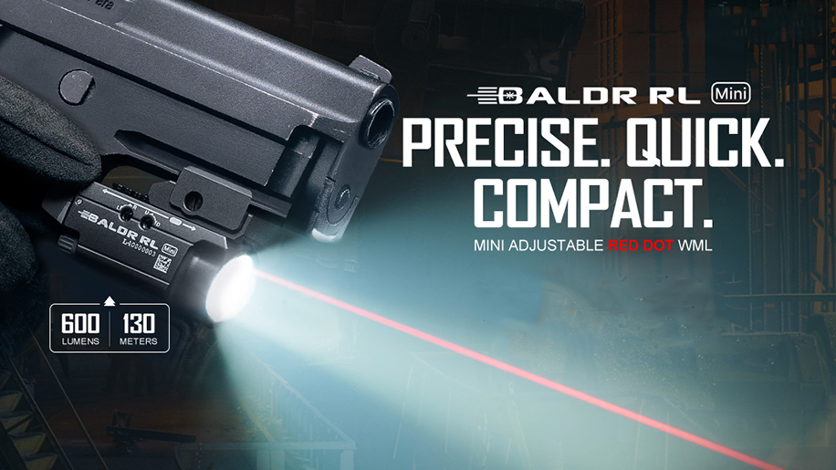 Baldr RL, introduced in March 2020, powered by two CR123A batteries, offers remarkable precision and targeting accuracy by combining a red laser sight with a powerful 1,120-lumen neutral white LED illumination. The 5mW red laser, selected for its optimal balance between visibility and eye safety, serves as a reliable aid for precise and accurate targeting, enhancing the user's capacity to acquire and engage targets swiftly and effectively. Its adaptable design facilitates seamless installation on Picatinny (MIL-STD-1913) or Glock rails, ensuring optimal performance and ease of use. The Baldr RL's dynamic capabilities, including the option to set the white LED to 300 lumens for consistent lighting, cement its position as a trusted ally for professionals seeking a reliable, high-performance lighting solution.