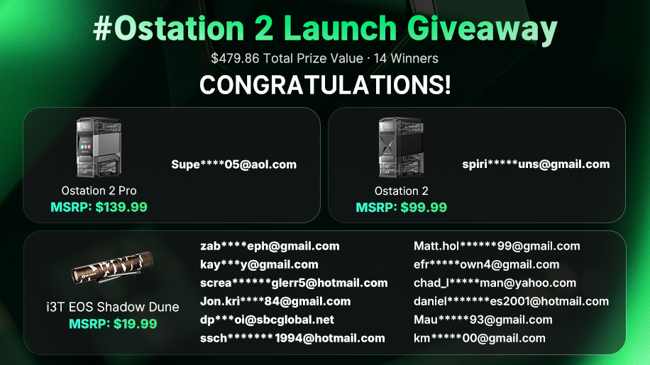 ● Grand Prize: 1x Ostation 2 Pro (1 Winner)--Worth: $139.99