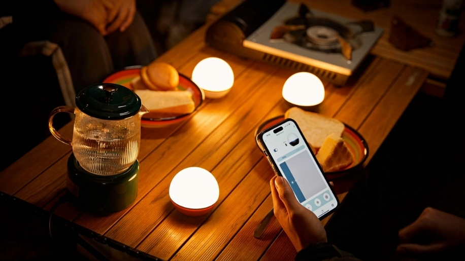 A soft-glow, waterproof orb light that shines for up to 49 hours. Easily control colors and brightness by touch or app. Perfect for cozy tents, outdoor tables, and camping nights.\