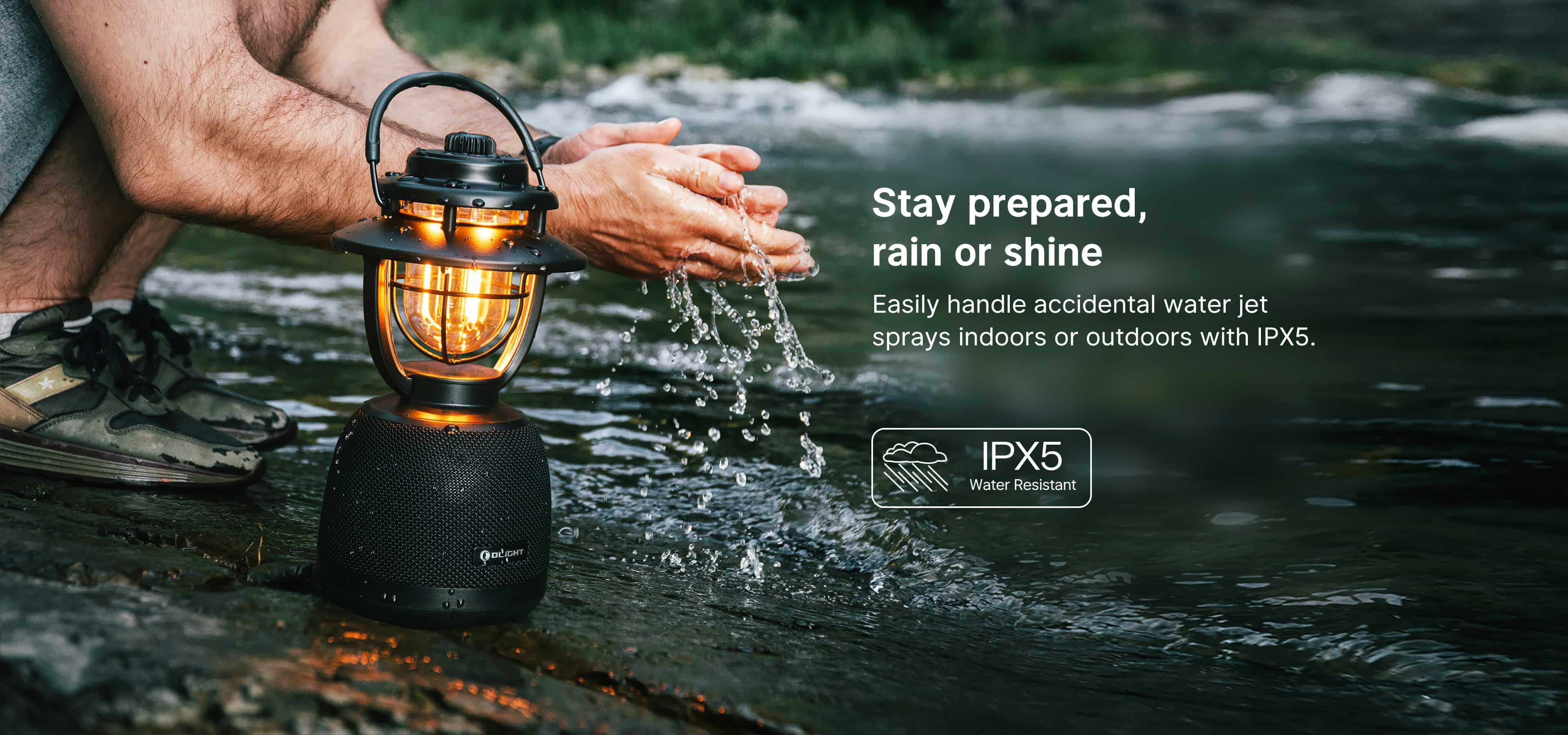 A: The lantern is IPX5 water-resistant, meaning it can handle light rain or splashes but should not be submerged in water.