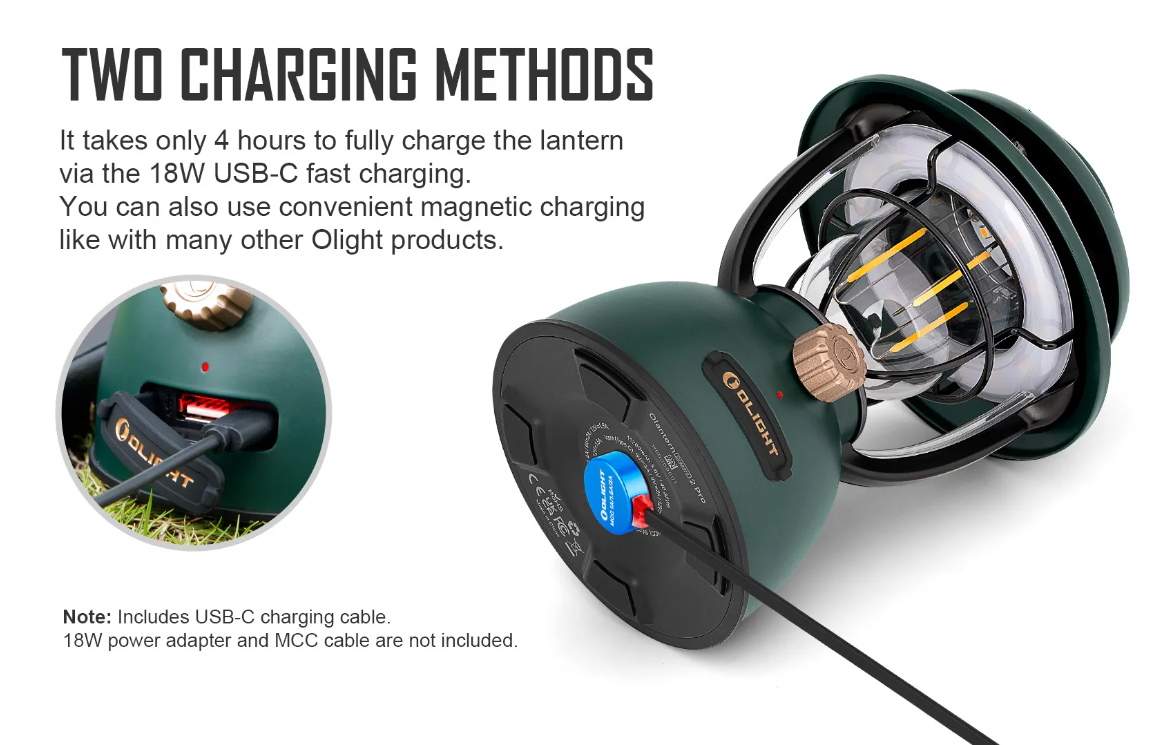 Some rechargeable lanterns come with additional features like solar charging or USB charging. The Olight lantern’s fast USB charging makes it convenient to recharge on the go.