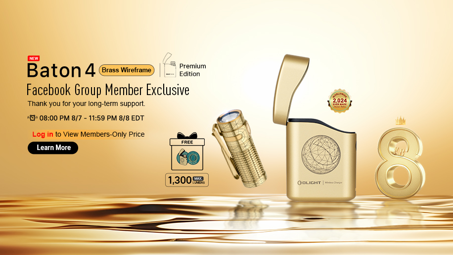 The Baton 4 Premium Edition (Brass Wireframe) is an exclusive, community-only variant of the popular Baton 4 Premium Edition for celebrating the facebook community's 8th anniversary. This special edition combines the powerful features of the original Baton 4 with a unique and stylish brass wireframe design, adding a touch of elegance and collectibility to the already impressive flashlight package. To purchase this special Brass Wireframe edition, you'll need to join our community. As a community member, you can get a code that allows you to buy this exclusive edition. Joining our community not only gives you access to this special edition but also connects you with fellow flashlight enthusiasts. Go and pick one!