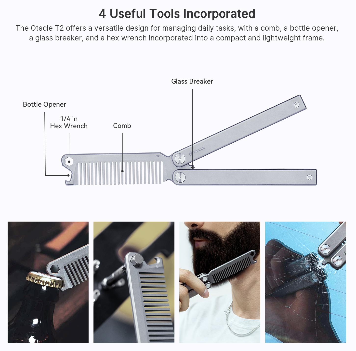 Handy 4-in-1 Design: Incorporates a comb, a bottle opener, a glass breaker, and a 1/4 in hex wrench to meet the needs of daily use.