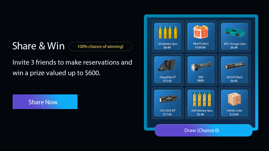 Share & Win – Good things are meant to be shared. Invite your friends to join the excitement by sharing your reservation link. For every 3 friends who successfully reserve, you'll unlock a guaranteed prize draw — and there's no limit. The more friends you bring along, the more chances you'll have to win. From practical gear to rewards worth up to $600, every spin is a little thank-you for growing this journey together.