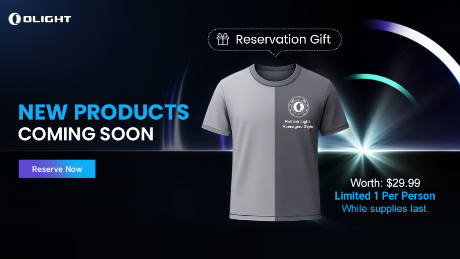 Reserve the new product to get the debut exclusive T-shirt valued at $29.99 as a gift with the purchase of the new product on Olight.com. Limit 1 per person. While supplies last.