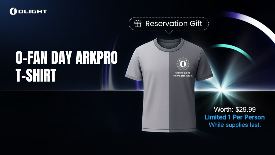 Add the ArkPro Series to your cart now to reserve by 8:00 PM EDT on 9/15. When the product officially launches, complete your purchase on Olight.com and you’ll receive the exclusive debut T-shirt plus a bonus accessory as free gifts with your order. Limit 1 per person, while supplies last.