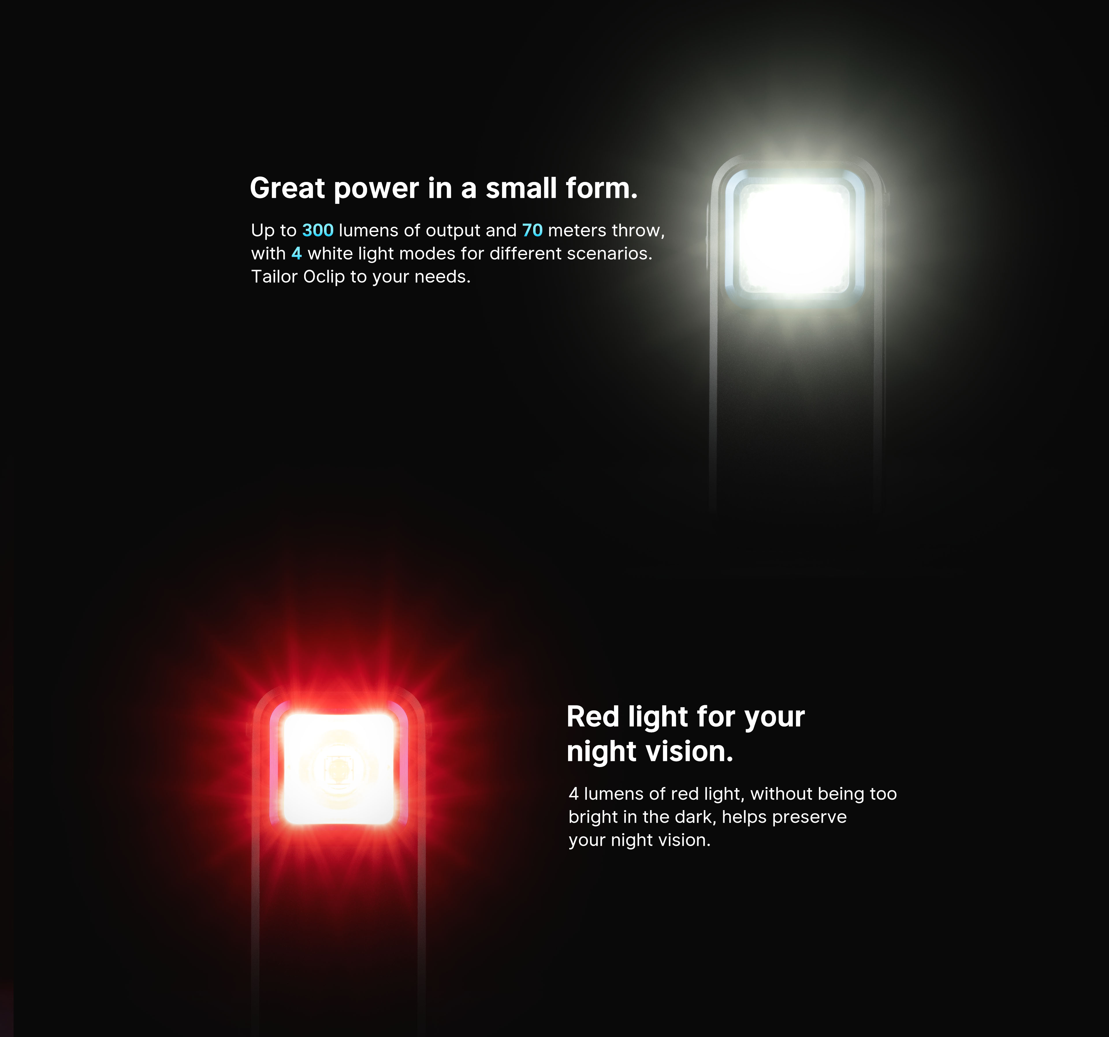 The Oclip offers both red and white lights, making it incredibly versatile. The red light is perfect for preserving night vision, making it ideal for activities like stargazing or nighttime navigation. The white light with 300 lumens provides bright, clear illumination for tasks that require more visibility, such as reading, hiking, or working in low-light environments. This dual-mode functionality makes the Oclip a reliable clip on reading light, as well as a convenient tool for outdoor or emergency use.