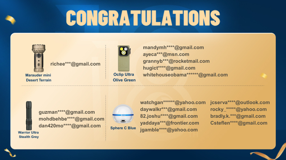 As Olight turns 18, we're filled with gratitude for every moment we've shared with you. To show our heartfelt thanks, we're giving back to the community that has supported us every step of the way — with free gifts worth over $1,000,000 sent to fans around the world who've supported our journey and helped us shine brighter every year.