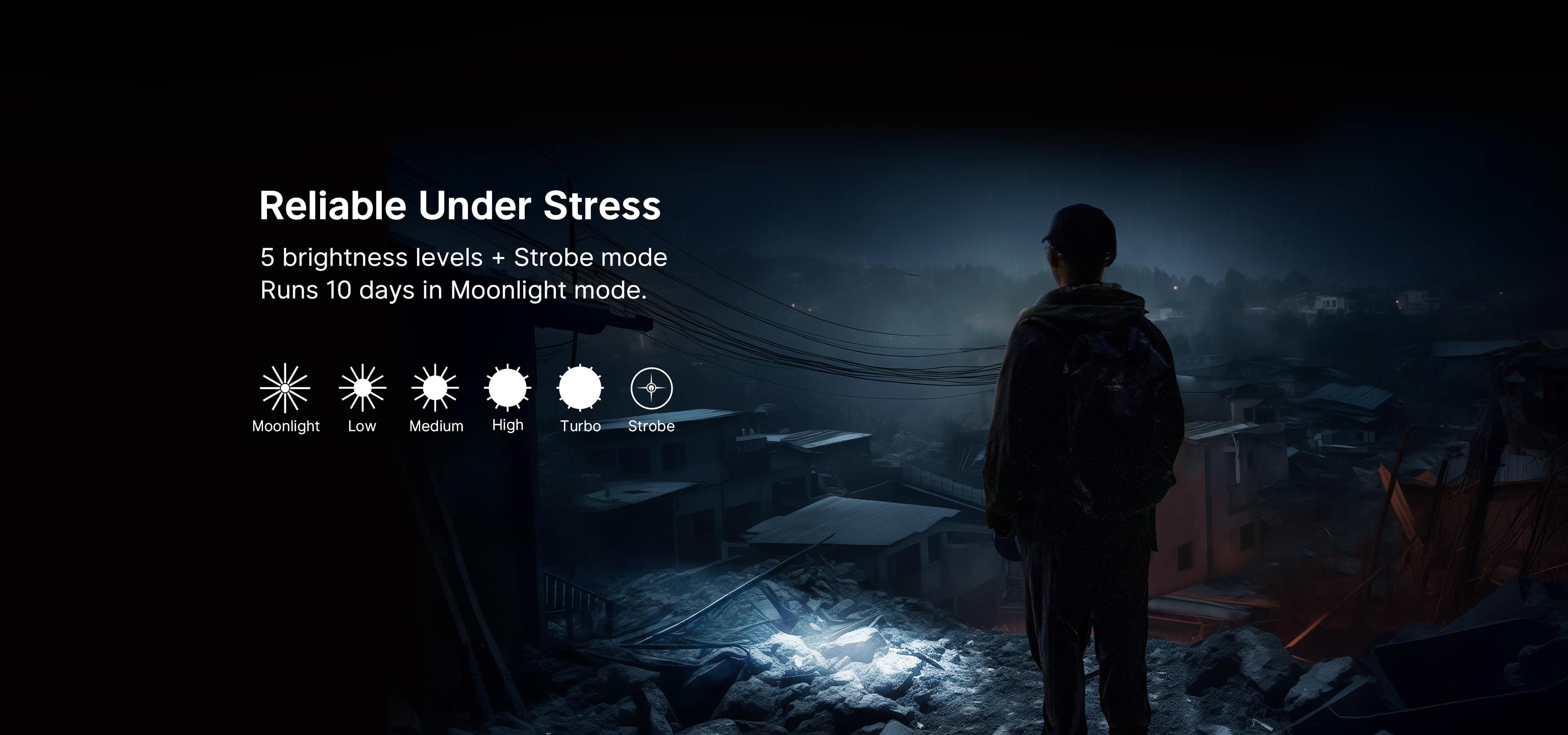 ✅Moonlight Mode - Maximum output 1.5 lumens and 2 meters beam distance. Best for reading maps and books.