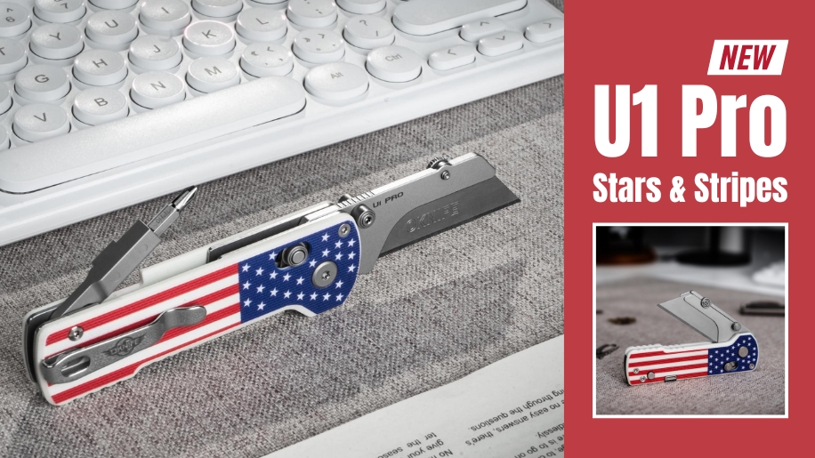 Show your pride with the U1 Pro, a compact and reliable utility knife featuring a bold American flag design. Built for everyday carry, it features a quick-release blade, durable metal construction, and a sleek profile for both function and flair. Whether you're opening packages, tackling precision tasks, or just upgrading your gear—this knife cuts with purpose and patriotism.
