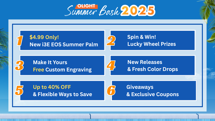 We're kicking off Olight Summer Bash 2025 with an exciting sale of up to 40% OFF, brand-new releases, fun giveaways, and more. Whether you're gearing up for outdoor adventures or adding something fresh to your EDC lineup, this summer event is packed with 6 perks you won't want to miss.