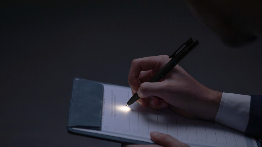 A pen-tip light designed for discreet writing in low-light environments