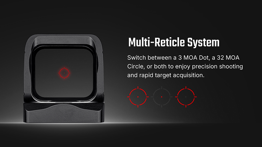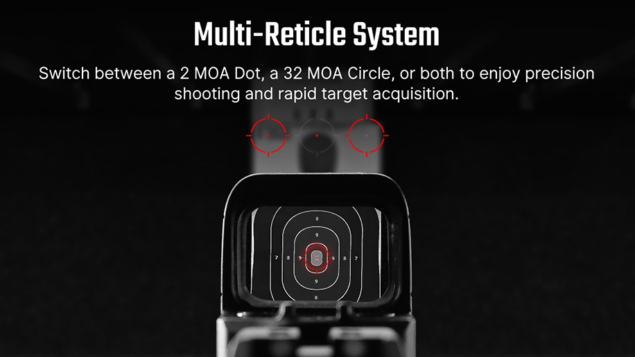 Looking for the perfect reticle for any situation? Switch seamlessly between dot-and-circle, dot-only, or circle-only reticles for your optimal aiming solution. The sharp, bright dot-and-circle reticle guarantees an advanced aiming experience.