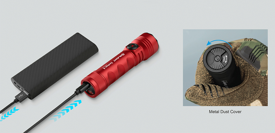 To bid farewell to the quest for the exclusive charging cable, the Seeker 4 EDC rechargeable flashlight embraces the universal Type-C charging interface. No more fumbling around for that specific cable when you need a power boost urgently. The Type-C interface is hidden behind a dust cover, ready to make an appearance with just a quarter rotation.