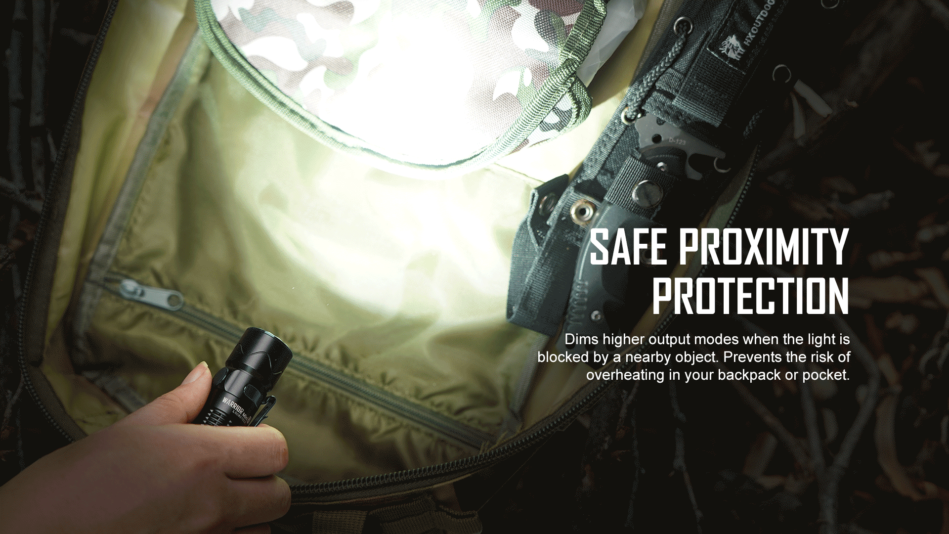 When users turn on higher modes, such as turbo or strobe, the Warrior Mini 2's proximity sensor will immediately drop the brightness level to protect against any potential danger. This feature not only helps to prevent accidents but also ensures that users can focus on their task at hand without worrying about damaging nearby objects or harming themselves.