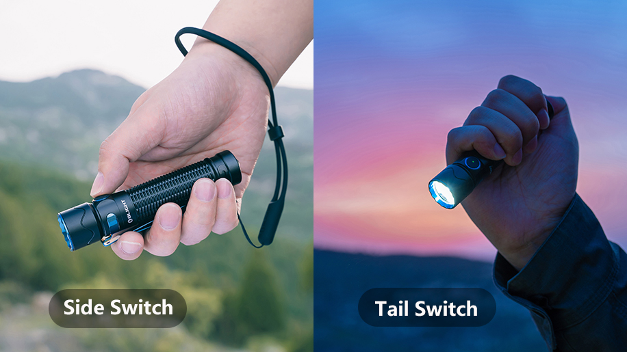 The Olight Warrior Mini 2 is a tactical flashlight designed for everyday carry and tactical operation. It comes with dual-switch system, which includes a side switch and a dual-stage tail switch. The tail switch is ideal for tactical situations where quick access to high-powered light is essential. You can activate the turbo or strobe with a single press.