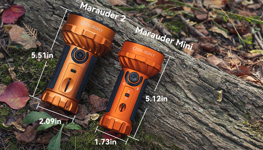 The Marauder Mini is a powerful flashlight that packs a punch in a compact size. Compared to its predecessor Marauder 2, the head diameter is reduced by 16%, and the diameter of the barrel is reduced by 20%. The reduction in barrel size gives it a more comfortable and secure grip. Measuring just 5.12 inches long and weighing only 16.3oz/462g (battery included), this Marauder Mini dual beam bright flashlight is easy to carry with you wherever you go. Plus, the included holster and lanyard hole design enhance the portability for storage and carry.