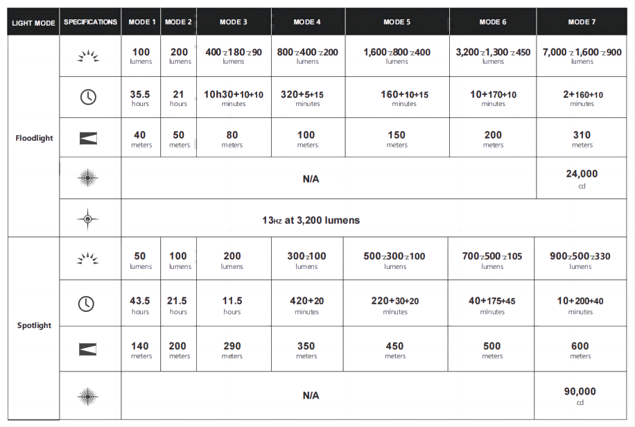 Details of 7 Brightness Setting on Flood and Throw