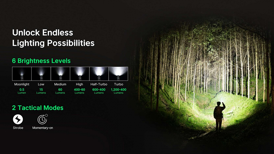 Equipped with an 1100mAh battery, the Warrior Nano offers a stunning runtime of 40 days in Moonlight mode, making it an ideal choice for extended expeditions.
